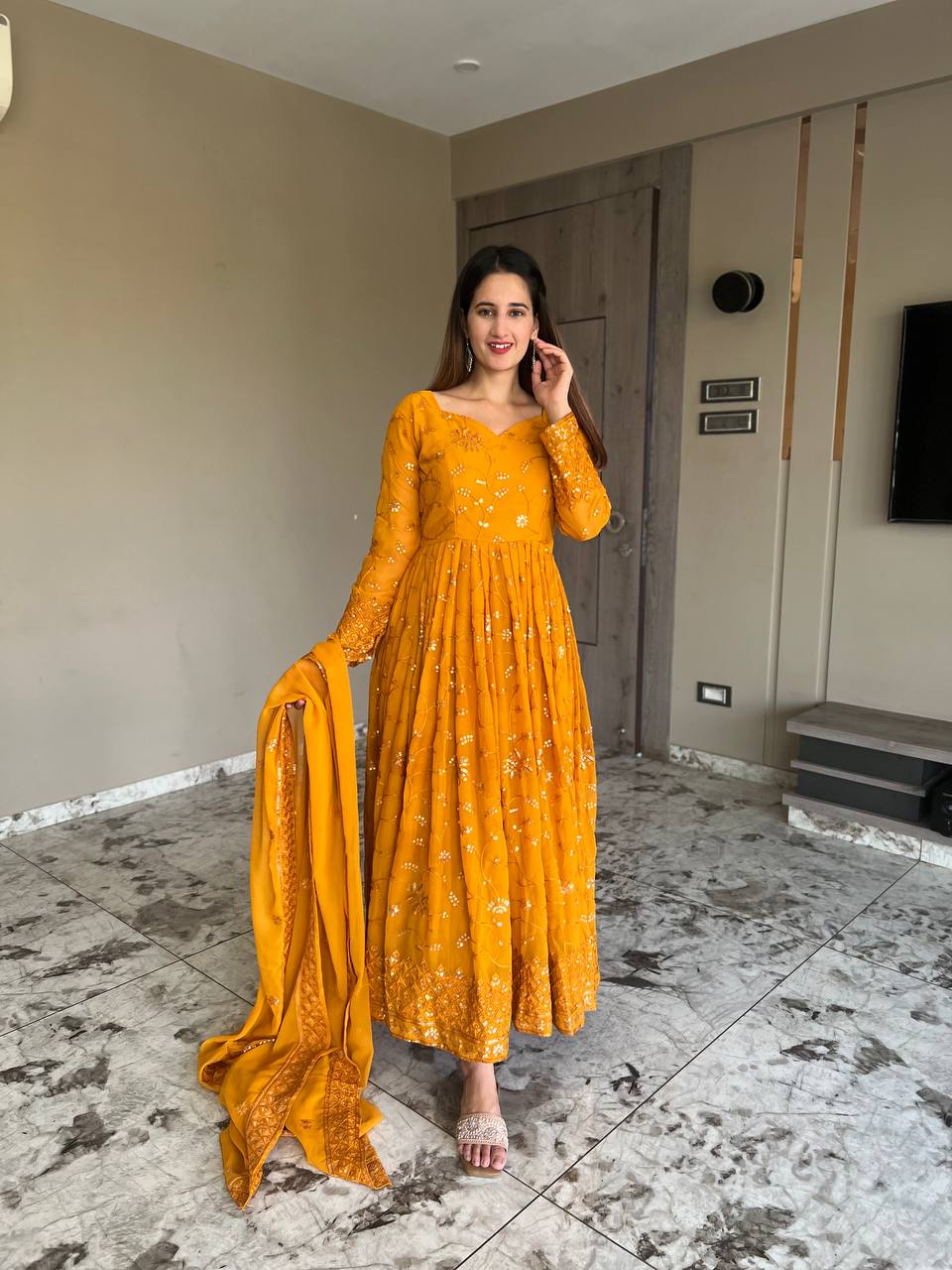 *Anarkali Fabric :* Heavy Faux Georgette With 5mm Sequence And Embroidery Work* *( Fully Sleevs )*